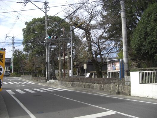 そしてその先の十字路で左はすぐ基山駅です。街道は真っ直ぐ進む