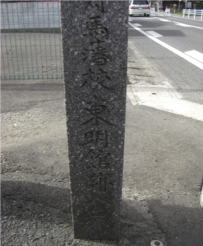 歩道橋の下った正面に大きな石碑が建っています