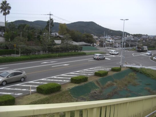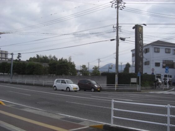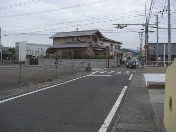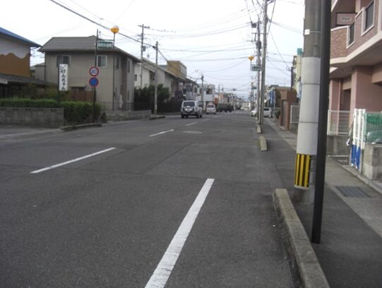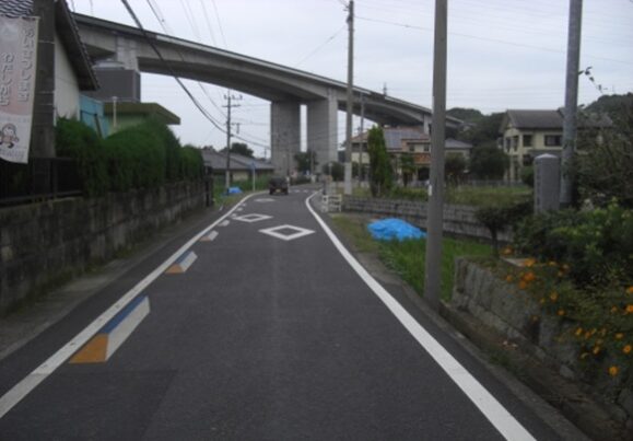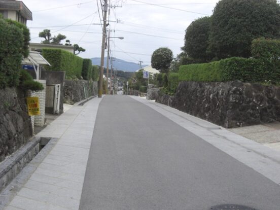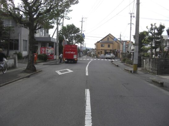 小学校の前から振り返る。学校等が多く集まっている文教地区の街道です。また少し進んでいった右手には、小鳥居諫早病院があります