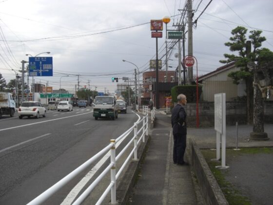 さらに南に進んでいくと、下篭井バス停のところの変則な辻に出ます。この辺りがかつての 一里塚跡 です