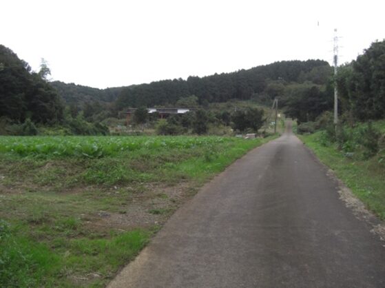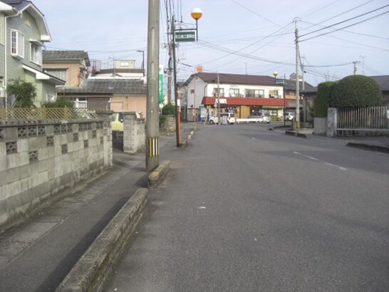 バス停のところで、枝道が出ていて、やや幅の広い道が分岐しますので、左(南東)の道を300m程進んでいきます