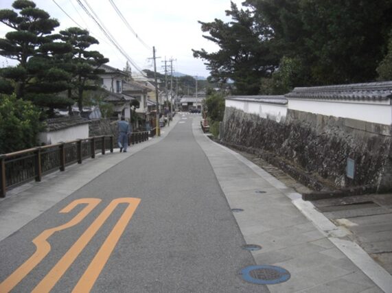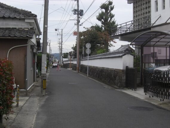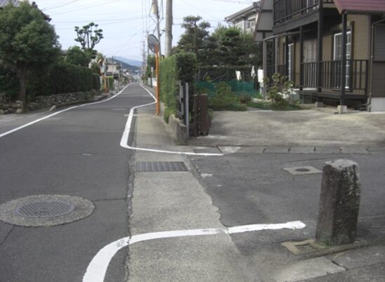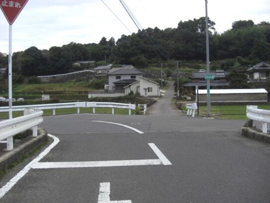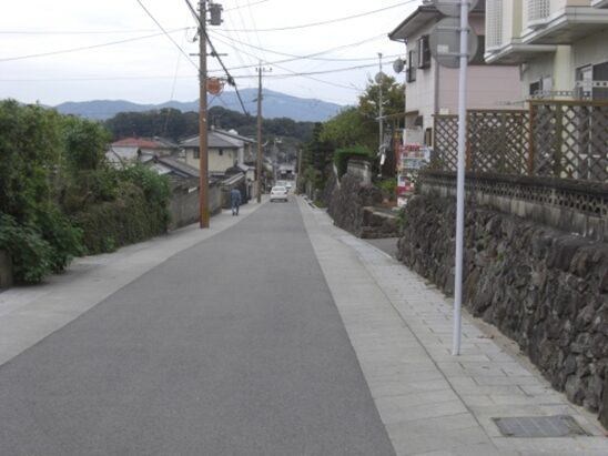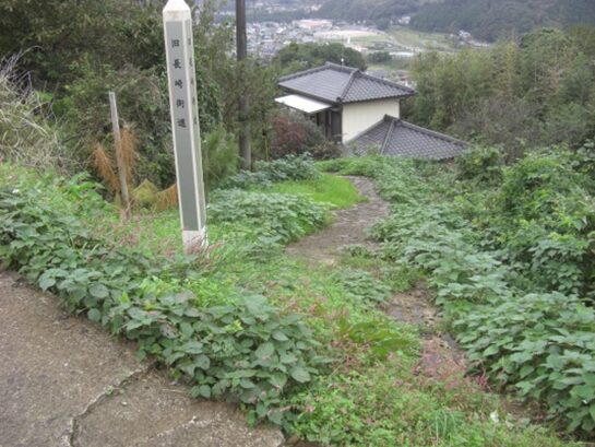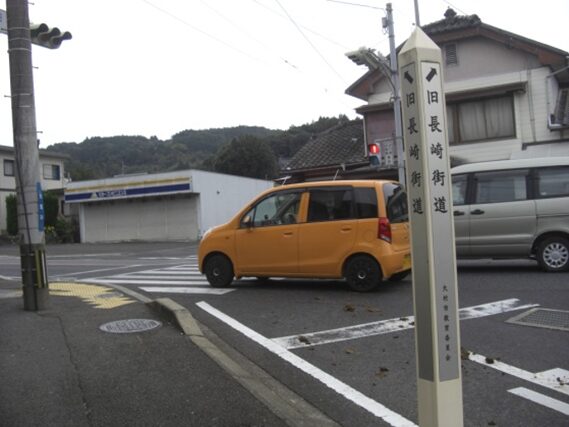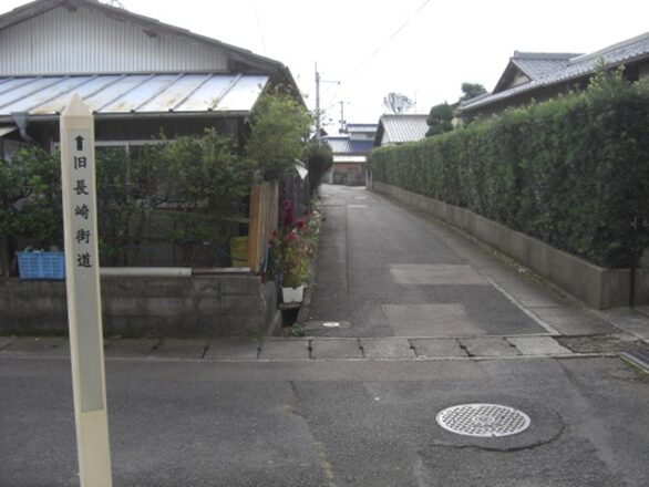 長崎街道は向かって右の道を出てきたところで、右に折れた長崎街道