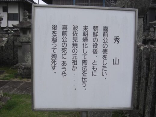 喜前公の死に伴い殉死した陶法朝鮮人帰化人秀山とは霊廟の両脇に建っている。死してもなお守っている