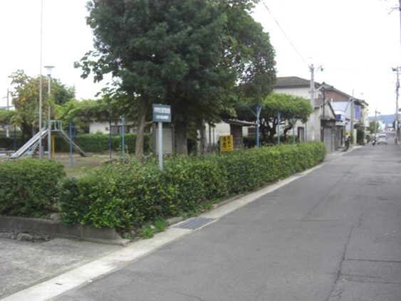天正二年(1574)キリシタンの焼き討ちにあい焼失した。その後再興されたが、明治に入り廃寺となる、この児童公園のところがその跡です