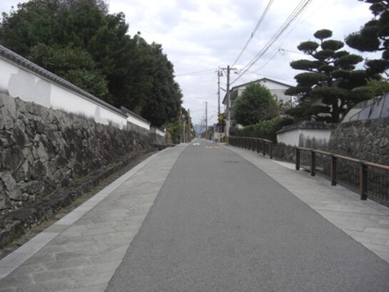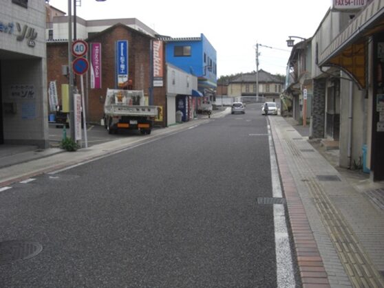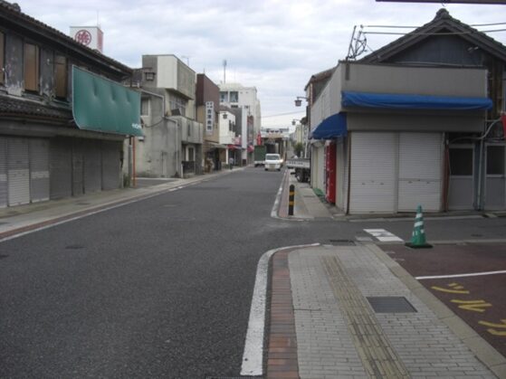 交差点から街道の町並みを振り返る左角 脇本陣跡です