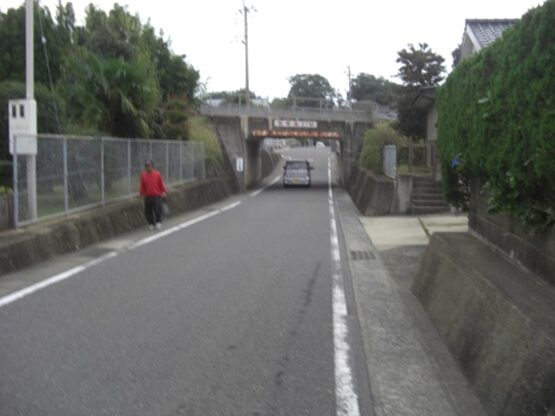 迂回のため信号交差点を右(南)に折れて、すぐのJR大村線の高架を潜り線路に沿って左に折れます
