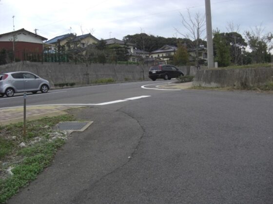 胴塚跡 の国道を挟んだ反対側(東)に左斜めの道路が交差点に合流してきます、国道との間