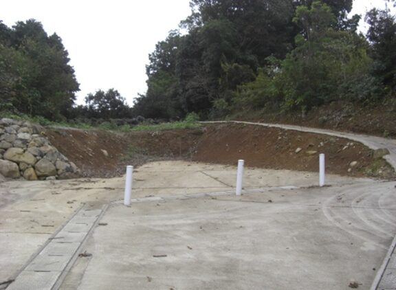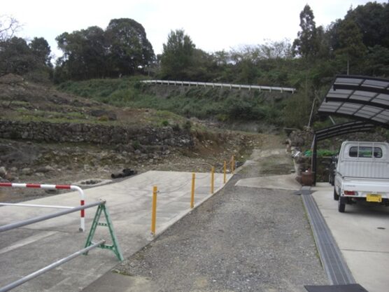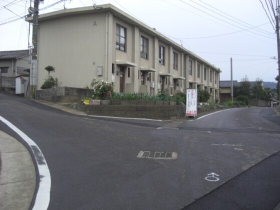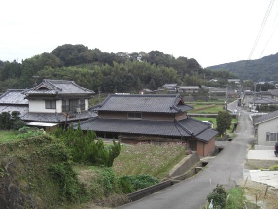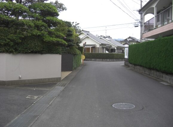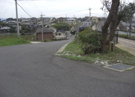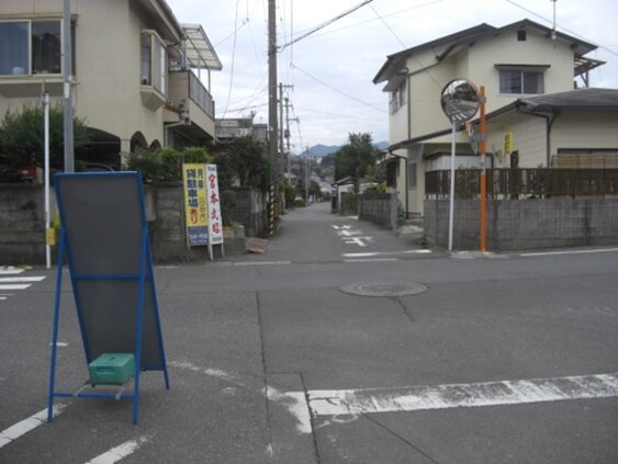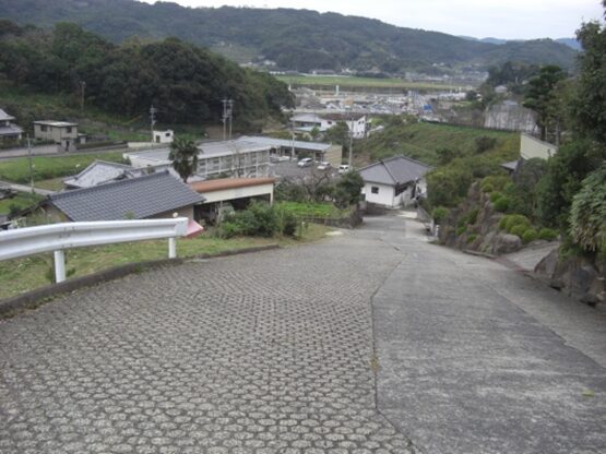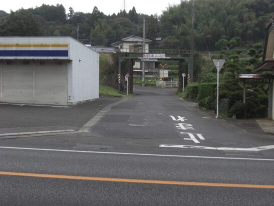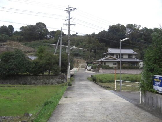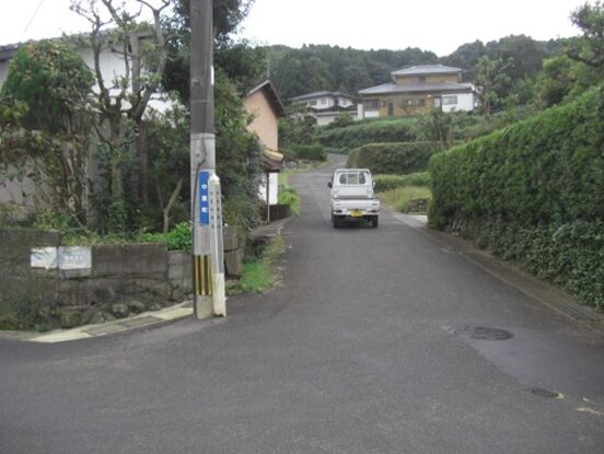 更に100m程進んだところです、左に分岐している狭い路地があるので左に50m程進みます。分岐する右手には上杭出津公民館があります