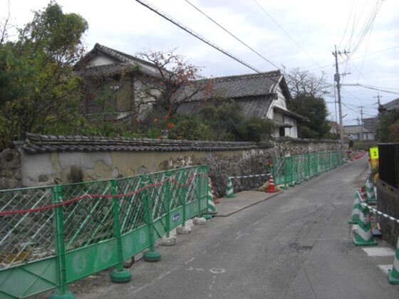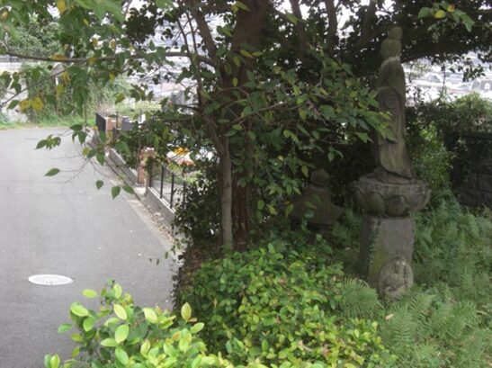 昨日の起点竹松駅入口信号交差点を進み、左の地蔵さんを見て、更に進むと原口住宅入口信号交差点手前に