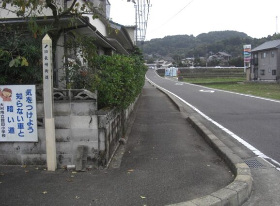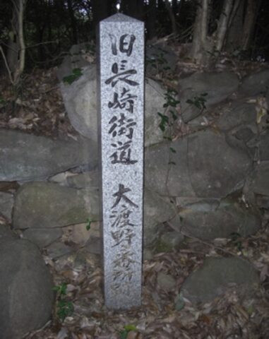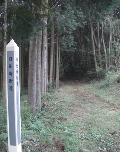 藩境には大村が丸、諫早が四角の石塚を築いていましたが、ここから北、風観岳の尾根筋に、巨大な三角の「三方塚」が残っているそうで、両者の舫塚(もやいづか)といわれている。三方とは佐賀領大渡野村と諫早領破篭井村と大村領鈴田村との境を示したものです。長崎街道には江戸時代街道沿いには松並木が広がっていたそうです。太平洋戦争末期に完全になくなってしまったそうです。
