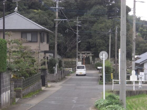少し進んだ先から振り返ったところで、正面に 古松大神宮 が見えます
