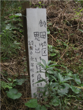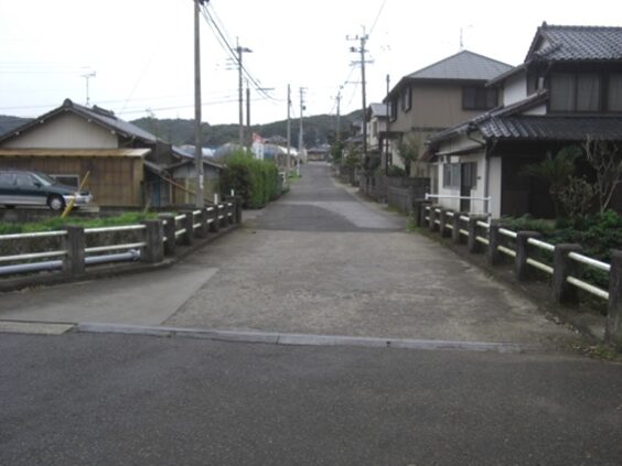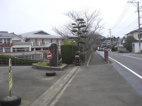 一里塚跡碑の前の街道から振り返ったところで左手奥に、鈴田小学校が見えます