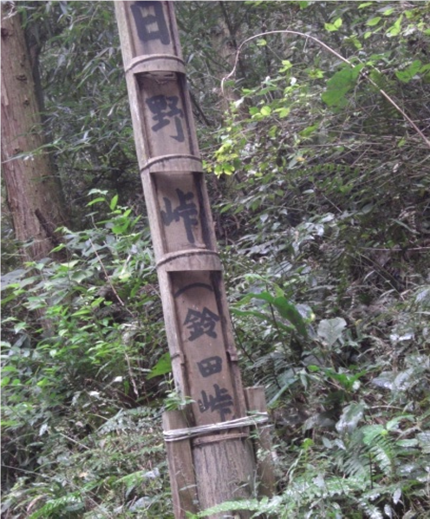 鈴田峠(日野峠)の標示 多くの表示がされています 伊能忠敬は日野峠と記しています