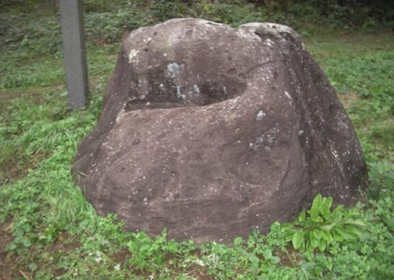その脇に「従是東佐嘉領」の傍示石が立っていましたが、風観岳の山頂に移設されている。大きなくぼみがある石です