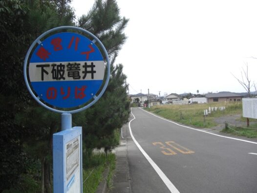やがて破籠井バス停に出ます、道幅も少し広く舗装もされ平坦な道になります