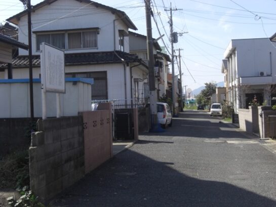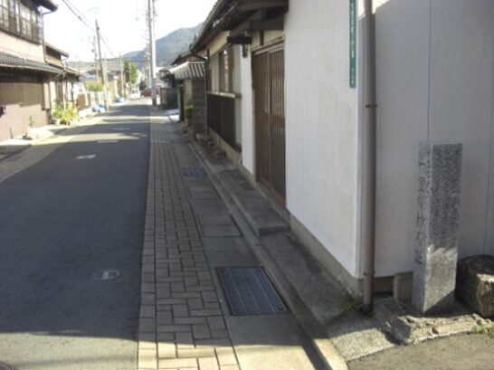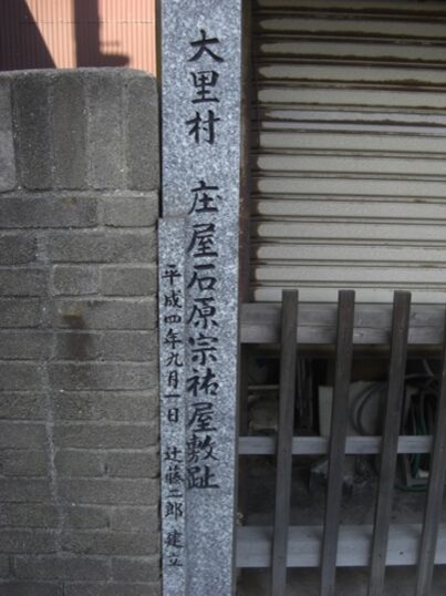 西生寺近くの街道沿い右に 大里村庄屋石原宗祐屋敷跡碑