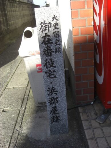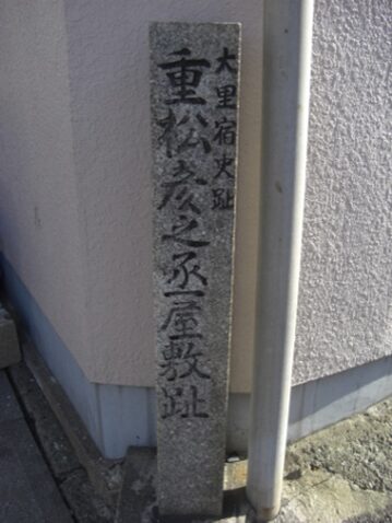 街道沿いに 重松彦之丞屋敷跡碑 脇本陣を務めた宿場内街道沿いには詳細に史跡碑等が建っています。郵便局のある交差点を過ぎた右手大里本町三には肥前屋・長崎屋が並んでいました