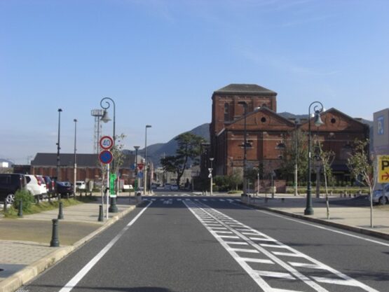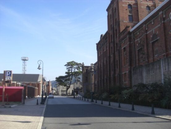 街道松のすぐそばの左に、門司ビール煉瓦館があり、その袂に