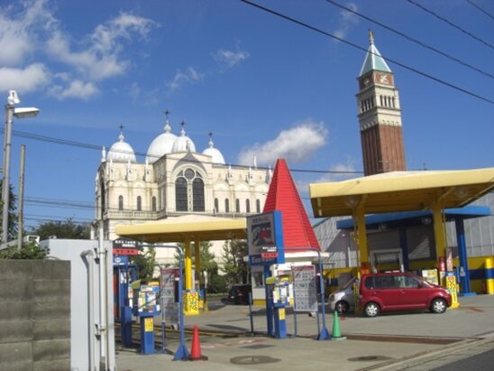 GSがあって199号線の海側にはもじ楽の湯等ハイカラな建物が建並んでいます宿場を抜けて松原地区に入ります