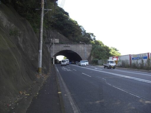国道3号線を600m程西に進むと手向山公園東信号交差点に出ます。その先は手向山を潜るトンネルがあります。
