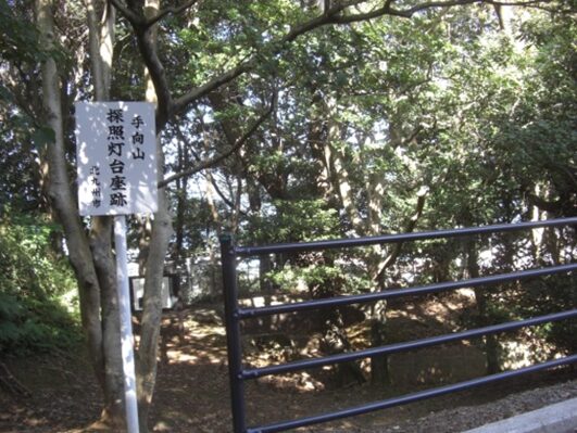 山頂に上ると手向山砲台の構築と共に、夜間の敵艦の侵入を把握するため、砲台から北西170m、標高50mのこの位置に探照灯を設置した