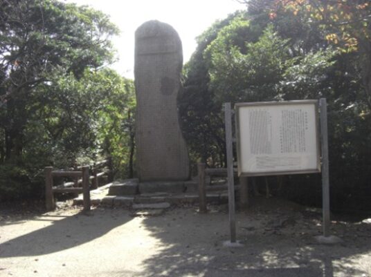 小倉小笠原藩の家老職であった宮本伊織源貞次より代々の墓所であります。正保二年(1645)五月十九日武蔵は肥後熊本にて没後伊織は養父を偲び承徳三年(1654)藩主より此の山を拝領し、後に手向山とも武蔵山とも称す。現在も墓所は宮本家の私有地管理されています。 (説明文より)