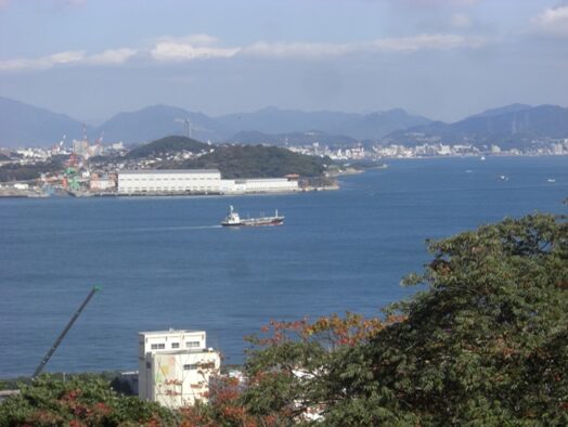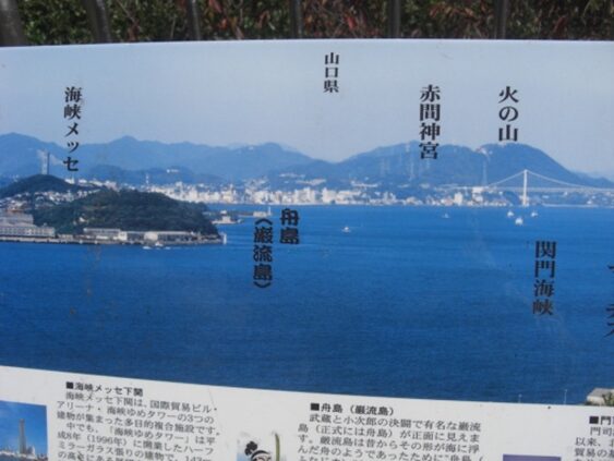 関門海峡と対岸の下関市の眺望
