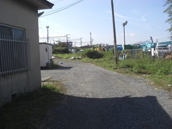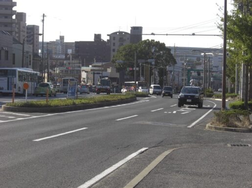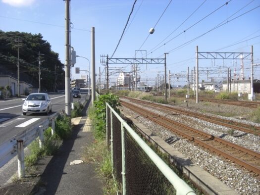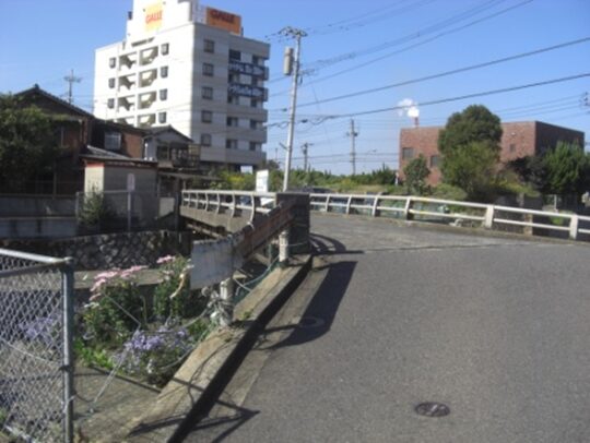 高架を潜ると松原二丁目で小さな川に架かる橋を渡ると、右に新町浄化センターがあります高架から400m程町並みを進むと左からの鹿児島本線の鉄道敷地に出ますので街道は完全に消失して線路の対岸国道3号線に出ることはできません。
