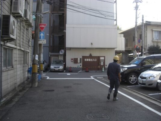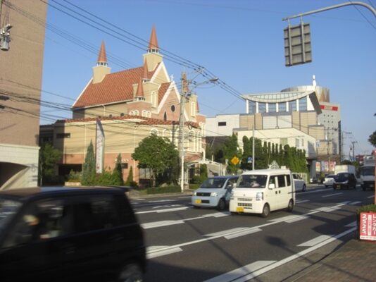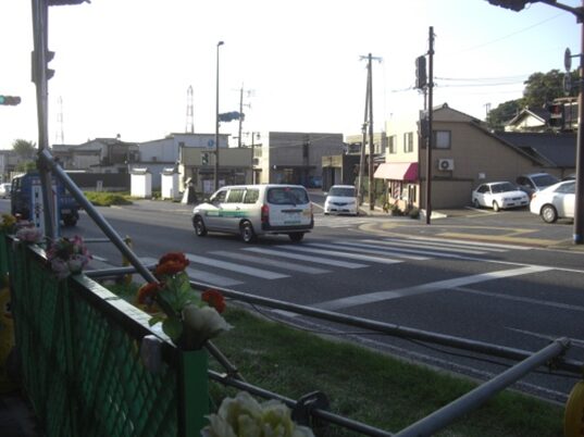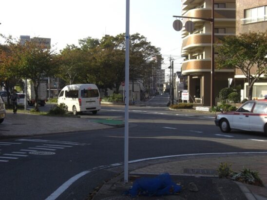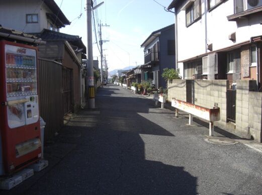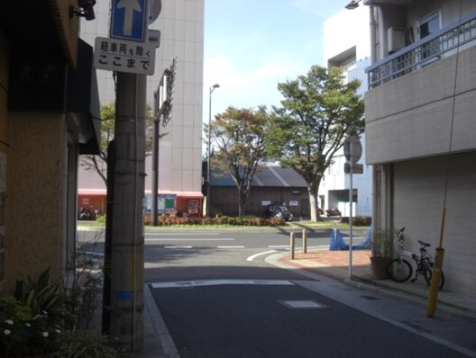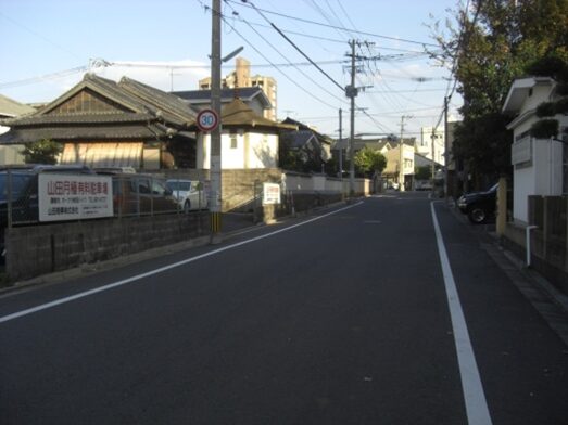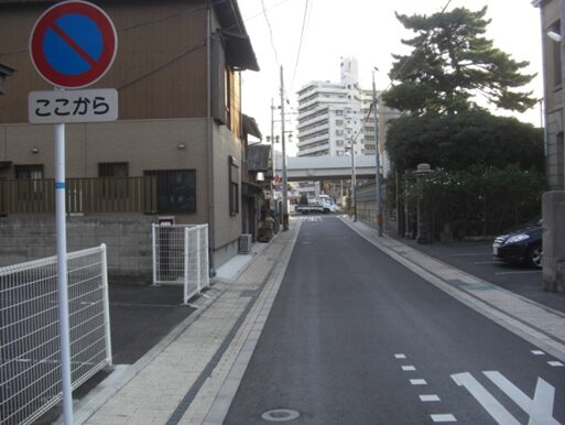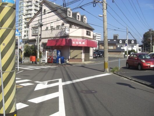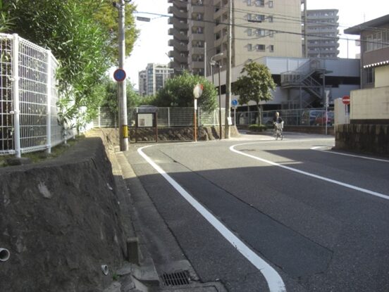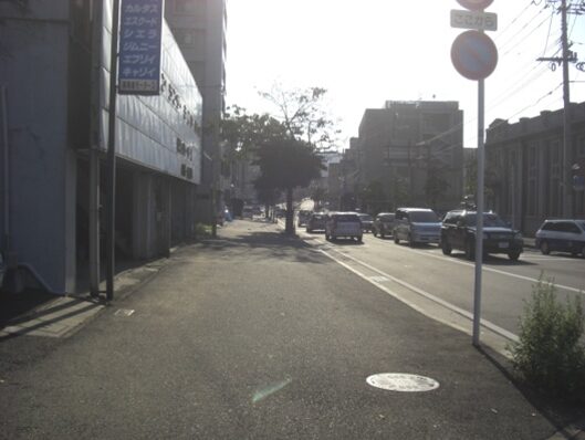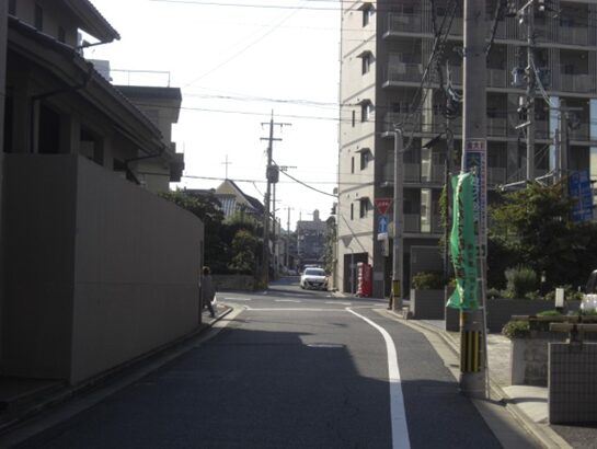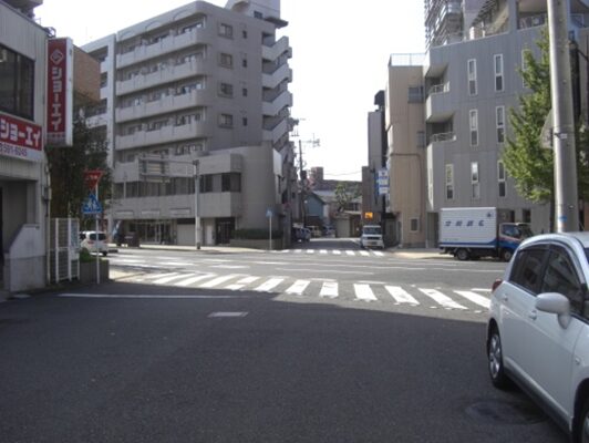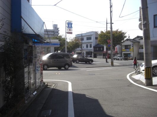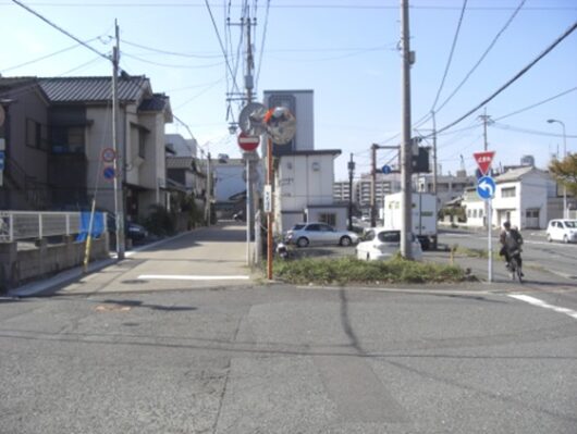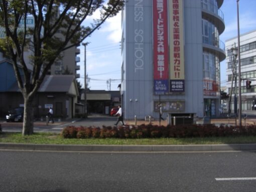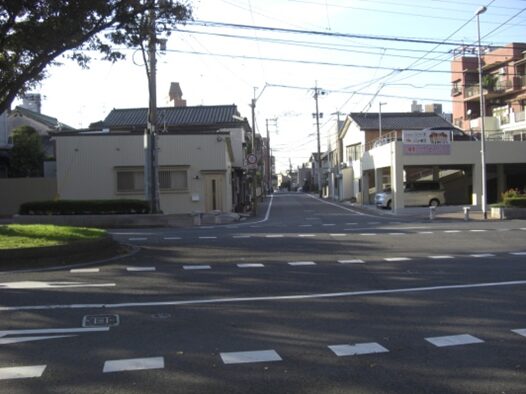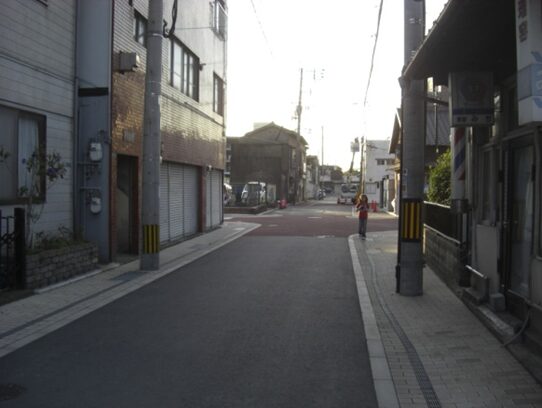 この十字路を左(南)に折れます左角には北九電子があります