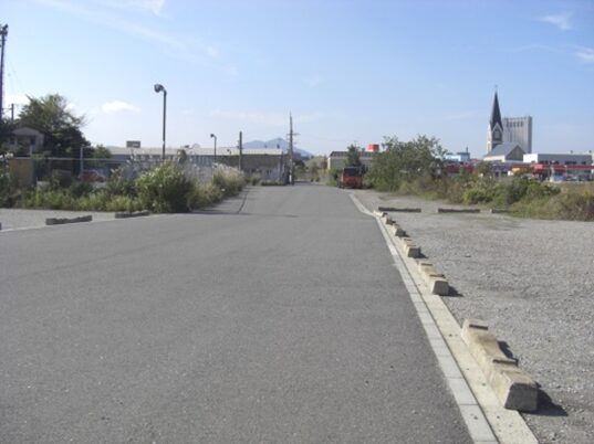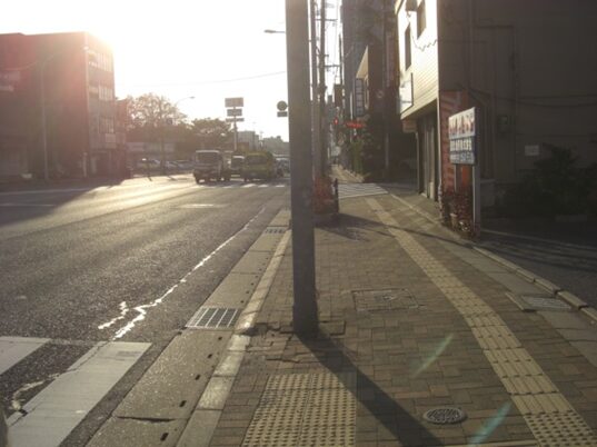 開発により綺麗な町になっています、綺麗すぎて少し古の街道風景が消えています、振り返ったところです