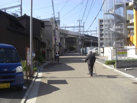 高架を潜ったすぐの左斜めに入る田町の旧道