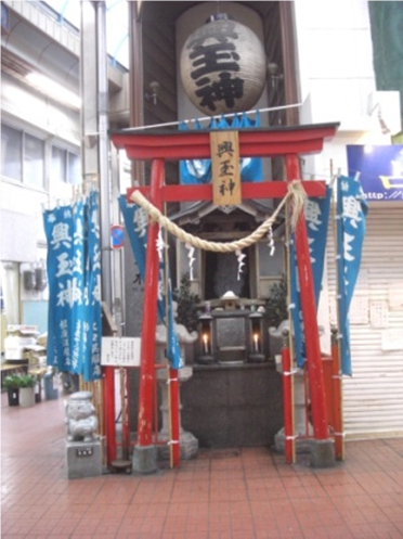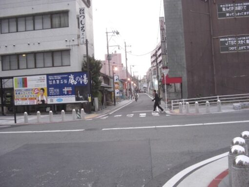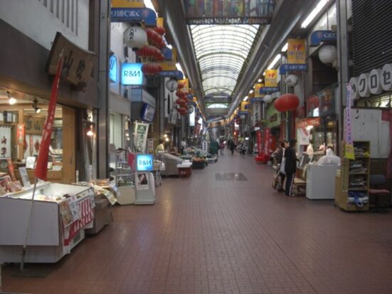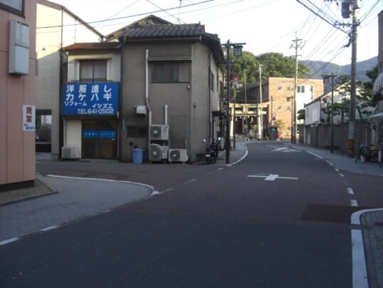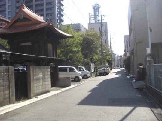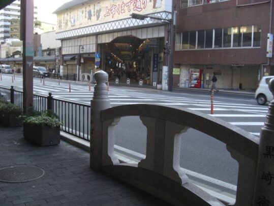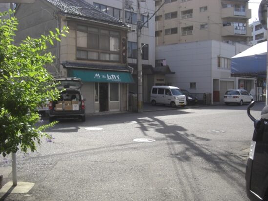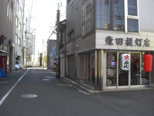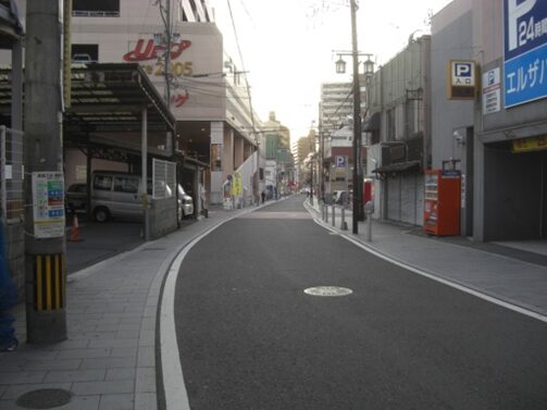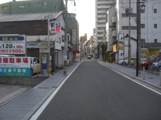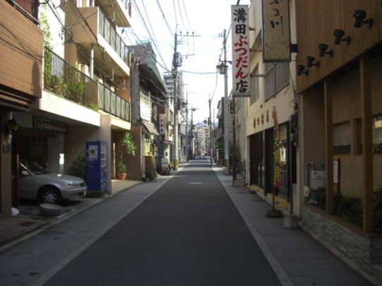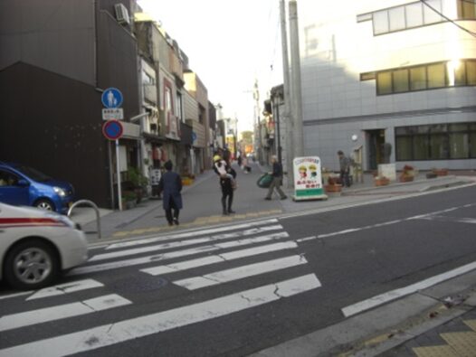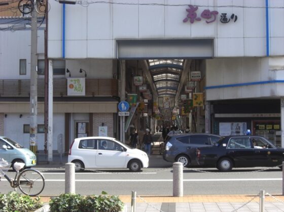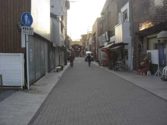 広い南北の車道を斜めに西南へ、商店街を入ります