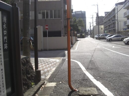 東溝口跡から150m程進んだ十字路を左(南)に折れます