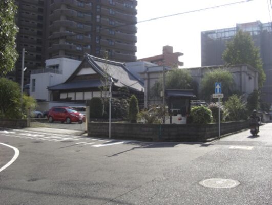 3号線で5号線の高架を潜った左の高台に見える 浄土真宗東本願寺派浄信寺