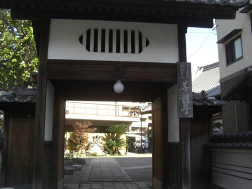 左奥に 浄土真宗本願寺派佛願寺 立派な楼門が建っています、銀杏の巨木も立つ