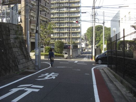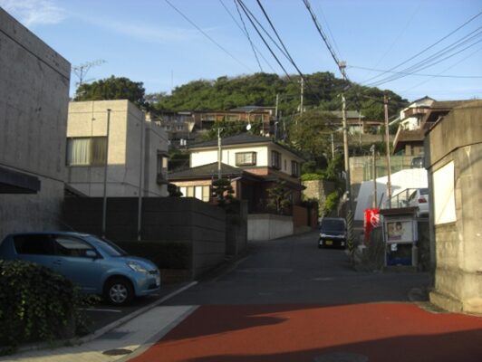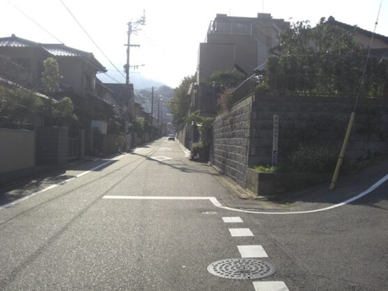 その先西に坂を下りながら住宅地を600m