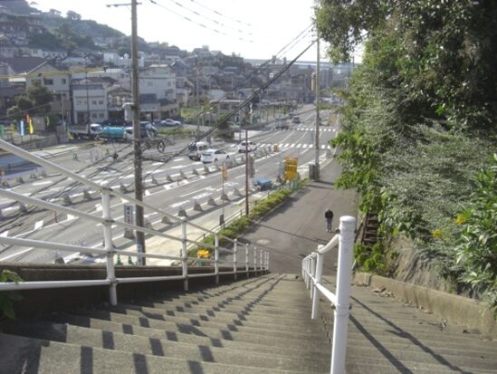 296号線の大蔵信号交差点の少し西側の石段に出るので下って296号線より引き継いだ62号線に出ます