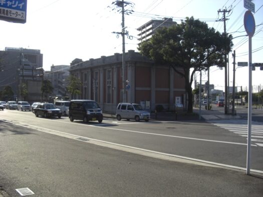 交差点の西南角に大正四年(1915)建設の 旧百三十銀行八幡支店があり、現在ギャラリーとして活用されています