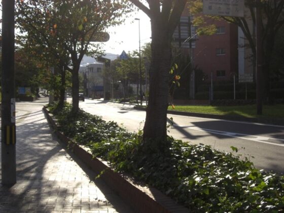 公園の前の街道から振り返る