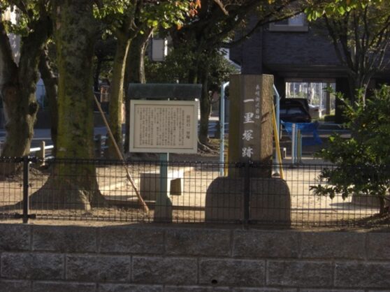 左の傍に 一里塚標石址碑