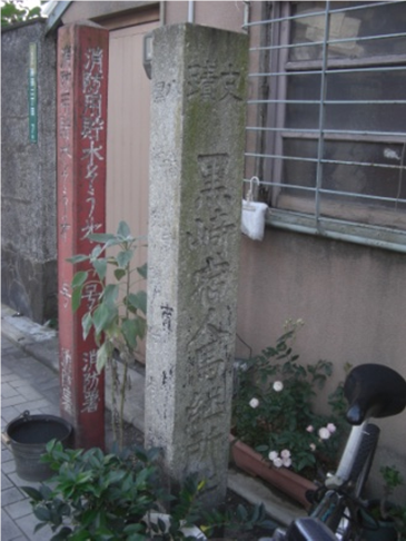 洞海湾が深く入り組んでいる藤田の浜の沖(現JR黒崎駅の北側)を埋め立てて水田を作る計画は、貞享四年(1687)から始まり完成した。その業績を記念して石碑に刻まれている。この辺りが 東溝口跡 でした