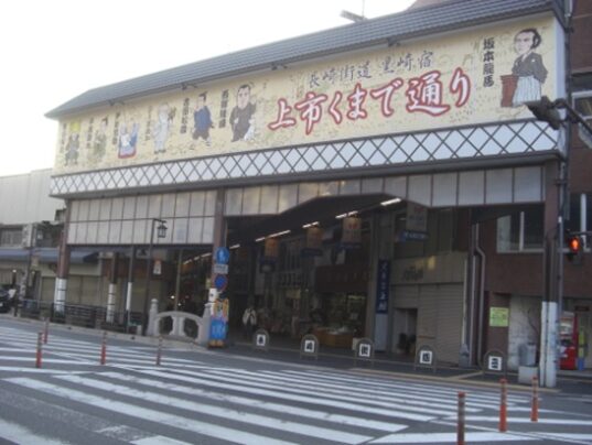 街道はアーケードのある上市までの商店街です