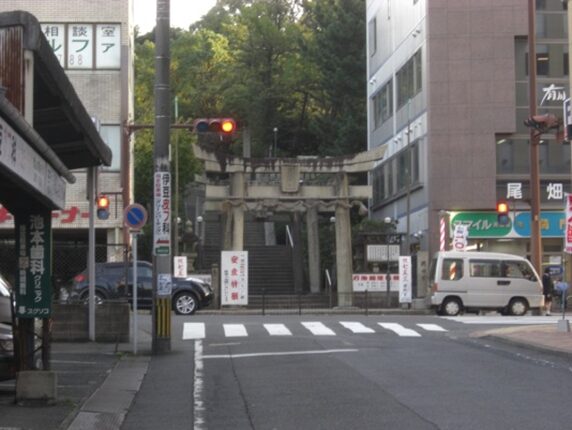 御茶屋跡の碑の傍の 八坂神社の鳥居 を左に入ると