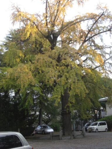 境内の巨木、車が小さく見えます