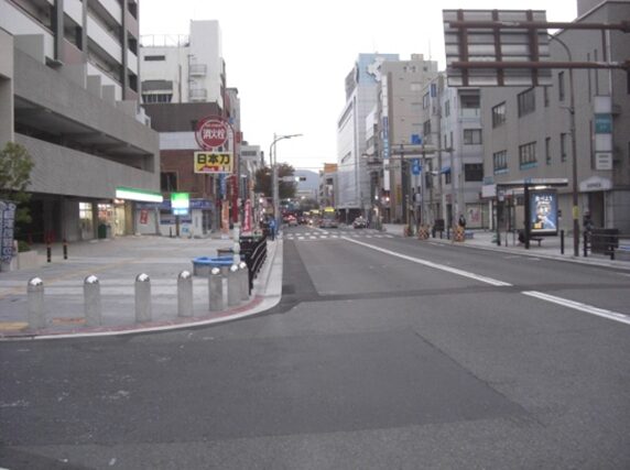 すぐ先の交差点を渡り振り返ったところ